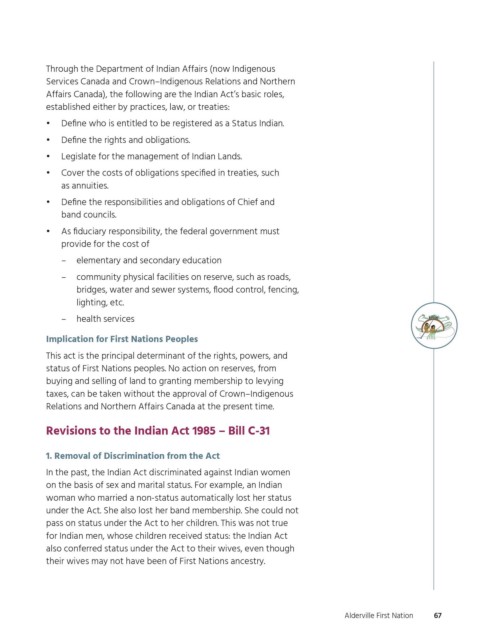 Affairs Canada), the following are the Indian Act’s basic roles,