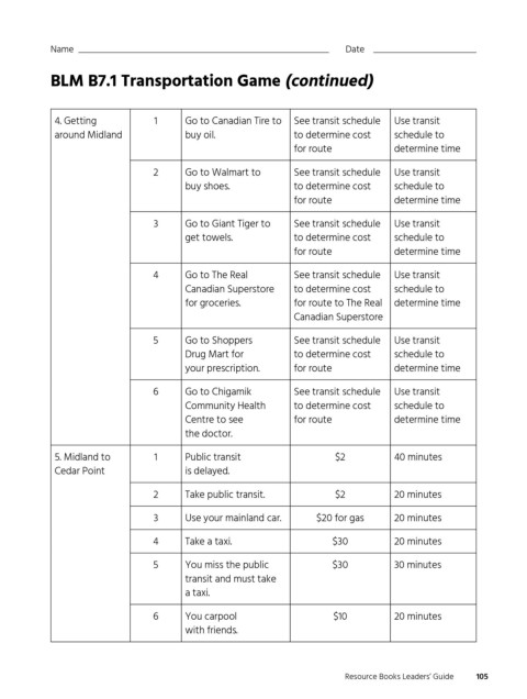 BLM B7.1 Transportation Game (continued)