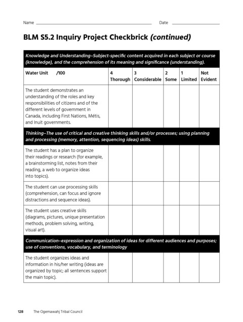 BLM S5.2 Inquiry Project Checkbrick (continued)