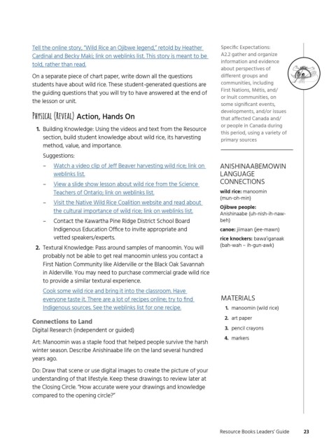 Teachers of Ontario; link on weblinks list. wild rice: manoomin