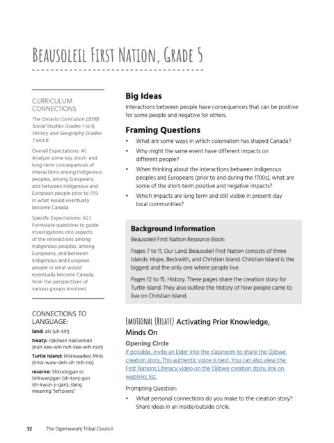 Pages 7 to 11, Our Land. Beausoleil First Nation consists of three