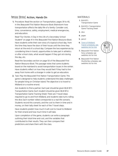 2. Task: Play the Beausoleil First Nation Transportation Game. This