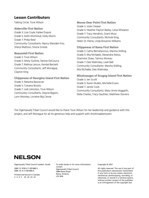 ISBN 13: 978-0-17-691689-3 Ogemawahj Tribal Council All rights reserved. The use of any part of