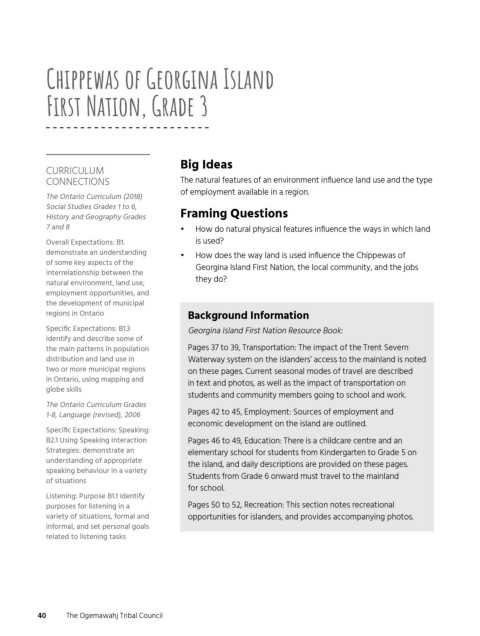 Specific Expectations: B1.3 Georgina Island First Nation Resource Book: