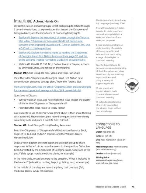 Physical (Reveal) Action, Hands On The Ontario Curriculum Grades
