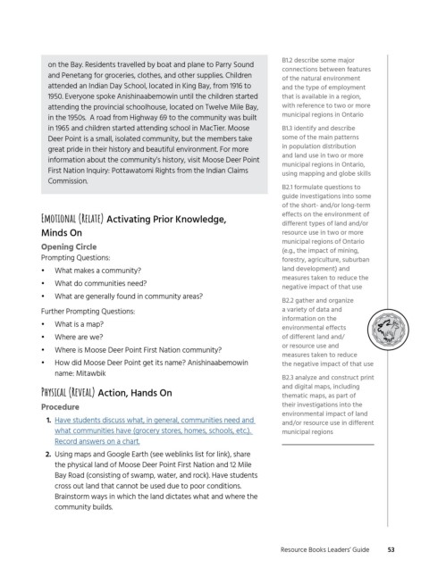 in 1965 and children started attending school in MacTier. Moose B1.3 identify and describe