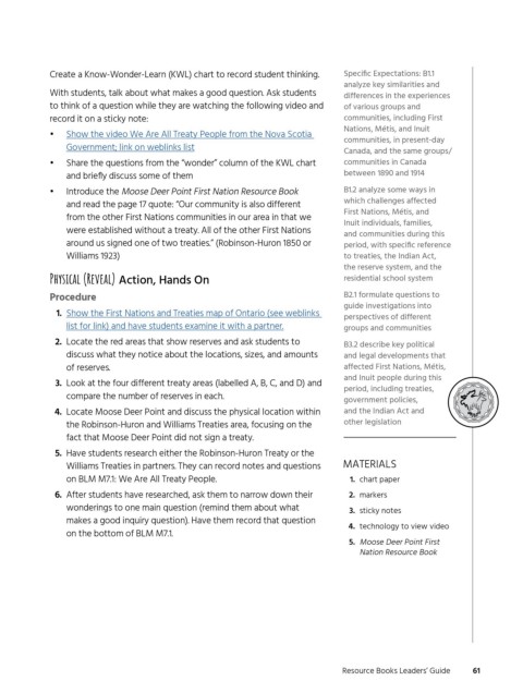 • Introduce the Moose Deer Point First Nation Resource Book B1.2 analyze some ways in