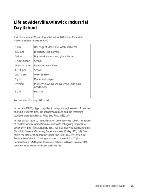 Daily Schedule at Mount Elgin School in 1851 (Sister School of