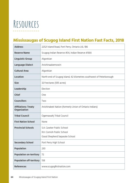 Mississaugas of Scugog Island First Nation Fast Facts, 2018
